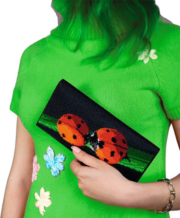 Перед вами подробная информация о наборе для вышивания крестом эксклюзивного кошелька «Божьи коровки» (артикул C-217, торговая марка «Клатч»).